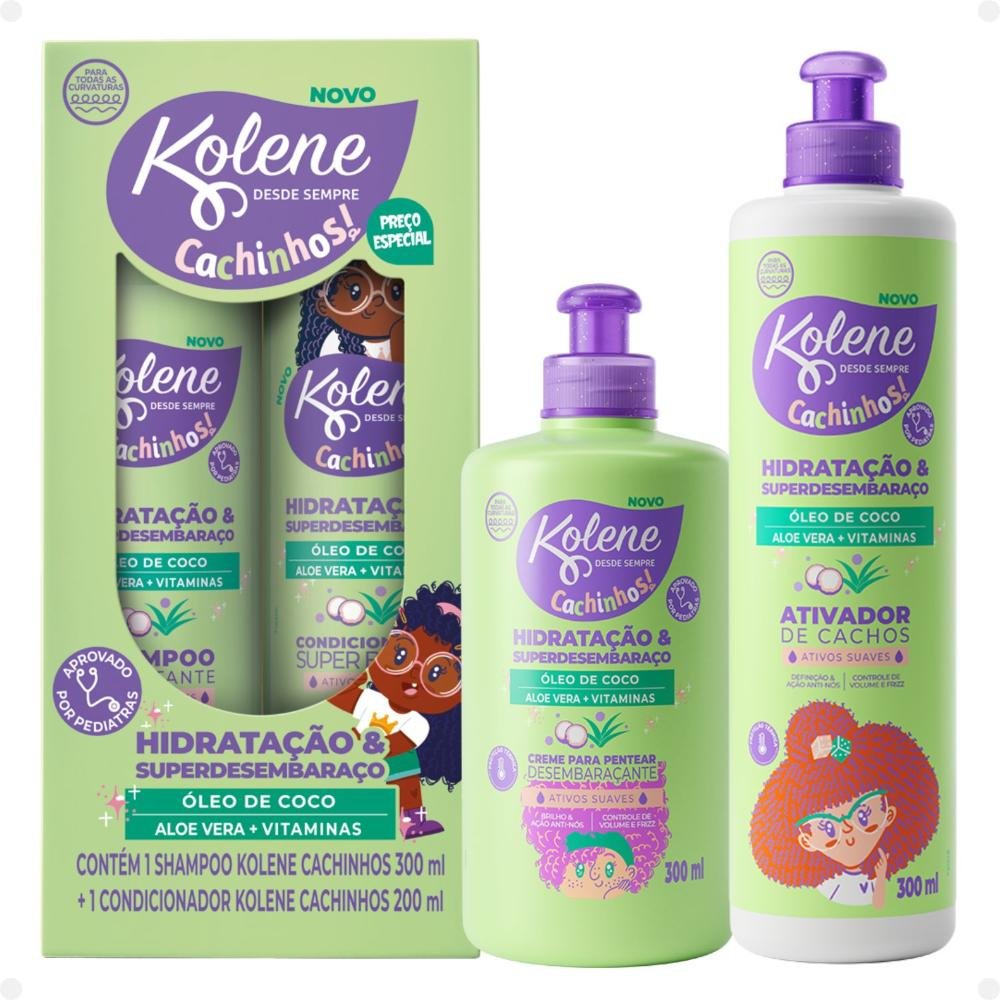Kit Kolene Cachinhos: Shampoo 300ml, Condicionador 200ml, Creme para Pentear e Ativador de Cachos