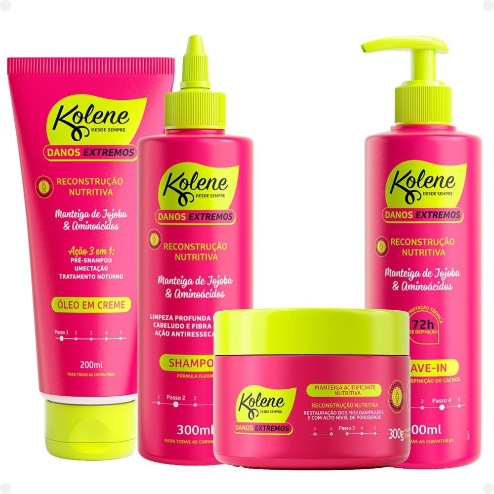 Kit Kolene Danos Extremos Reconstrução Nutritiva: Óleo em Creme, Shampoo, Manteiga Acidificante e Leave-In