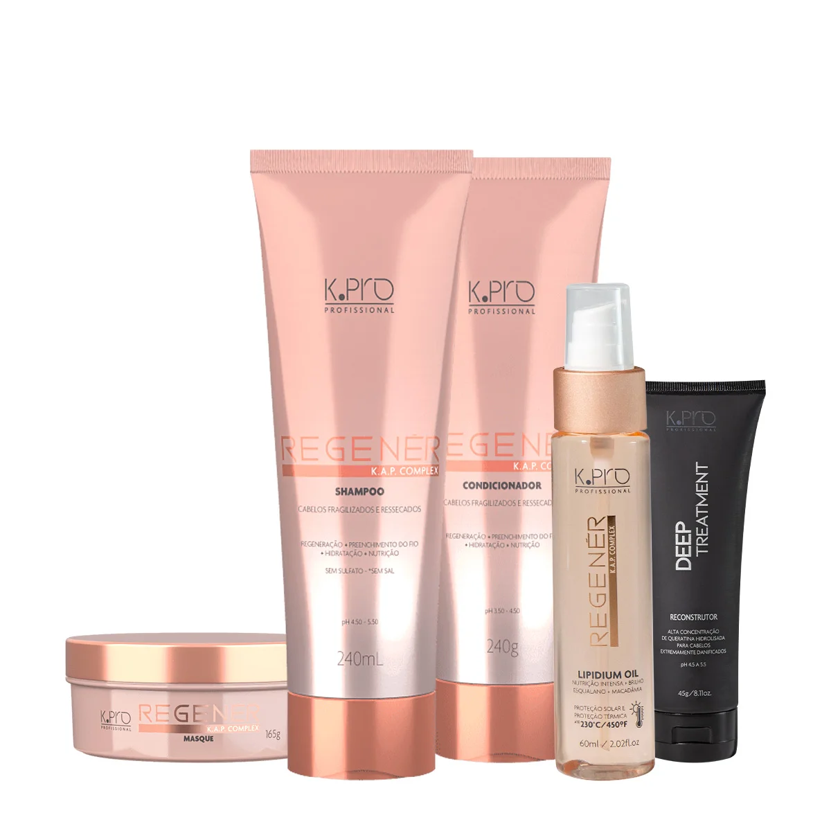 Kit K.Pro Professional Regener Shampoo Condicionador Mascara Oleo Capilar e Tratamento Reconstrutor (5 produtos)