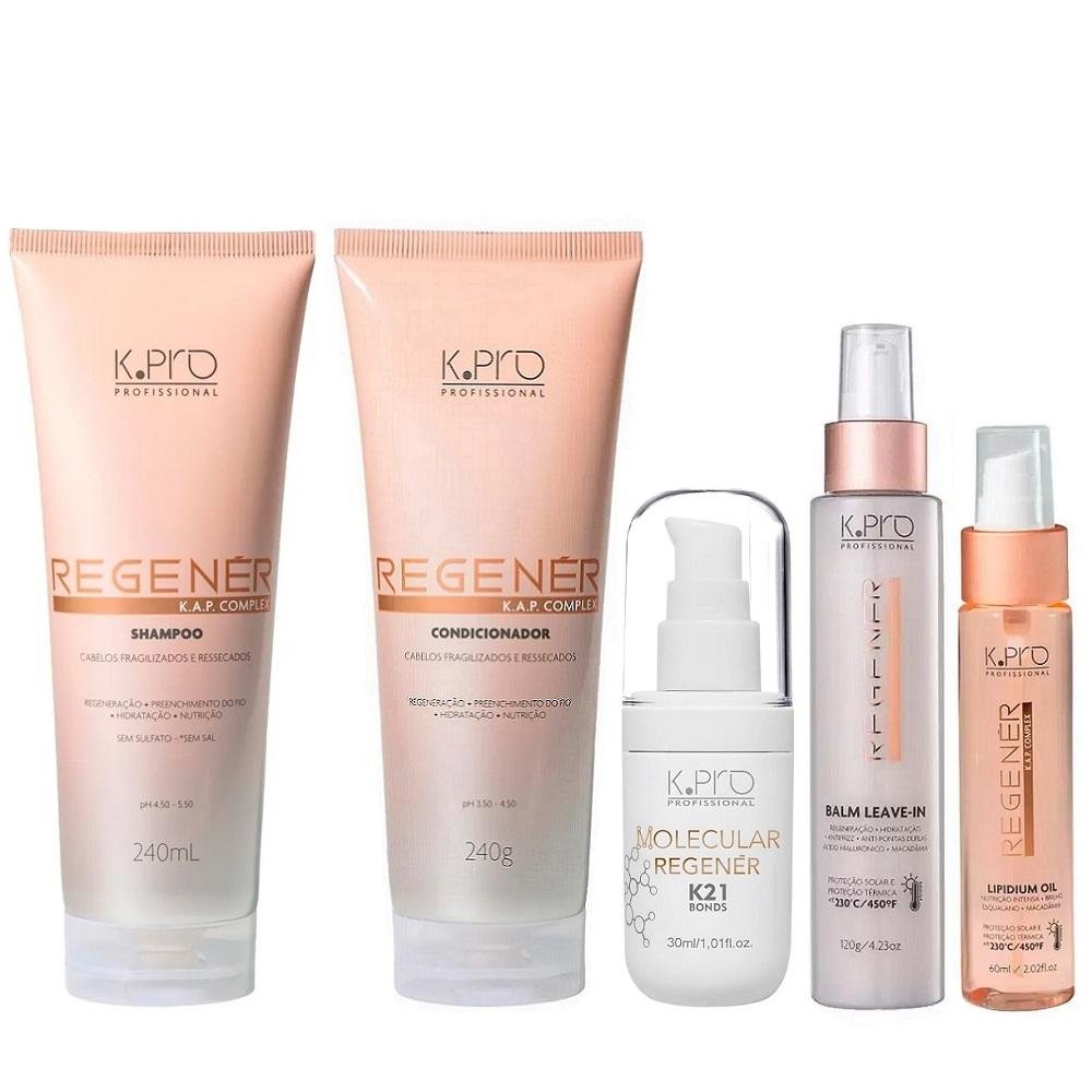Kit K.Pro Regenér - Shampoo 240ml + Condicionador 240ml + Balm 120ml + Óleo 60ml + K21 30ml