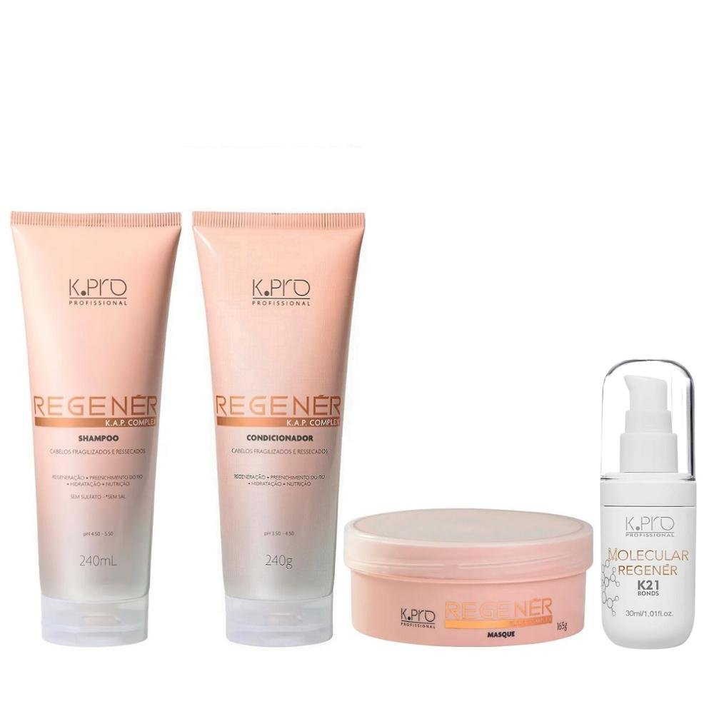 Kit K.Pro Regenér - Shampoo 240ml + Condicionador 240ml + Máscara 165g + K21 30ml
