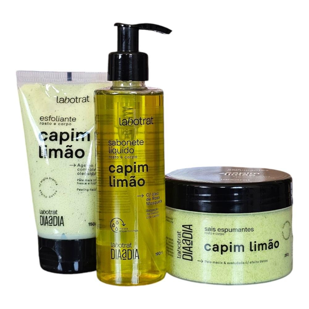 Kit Labotrat Dia a Dia Capim Limão - Sabonete Líquido + Esfoliante + Sais Espumantes