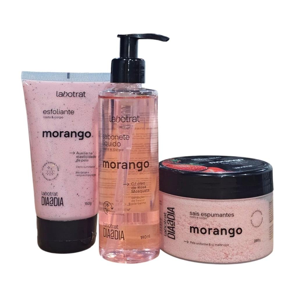 Kit Labotrat Dia a Dia Morango - Sabonete Líquido 190ml + Esfoliante 150g + Sais de Espuma 280g