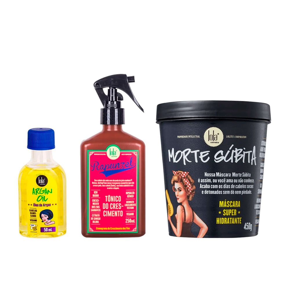 Kit Lola - Óleo Argan Oil 50ml+Máscara Morte Súbita 450g+Tônico Rapunzel de Crescimento 250ml