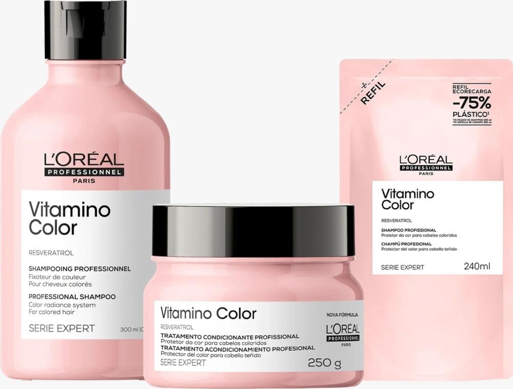 Kit Loreal Vitamino Color - Shampoo 300ml + Máscara 250g + Refil 240ml