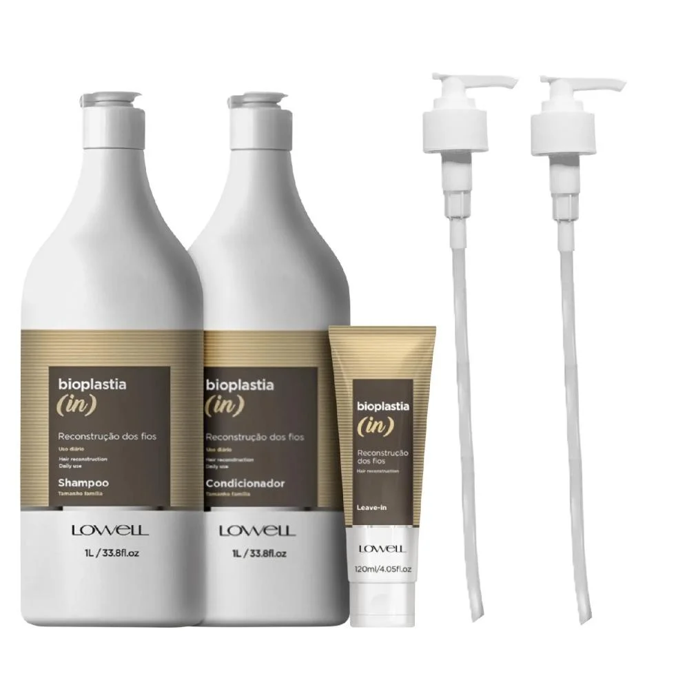 Kit Lowell Bioplastia (in) - Shampoo 1 Litro + Condicionador 1 Litro + Leave-In 120ml + Válvulas Pump