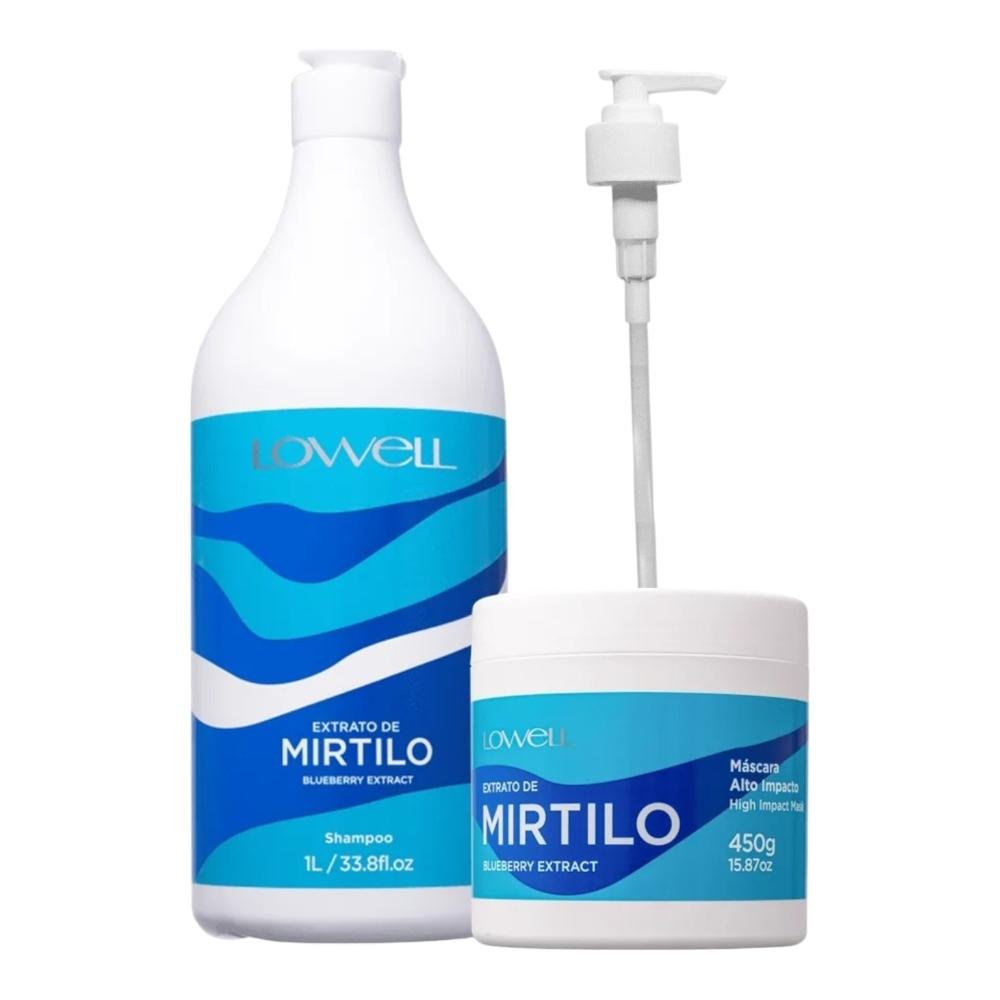 Kit Lowell Extrato de Mirtilo Shampoo 1 Litro e Máscara 450g + Válvula PUMP