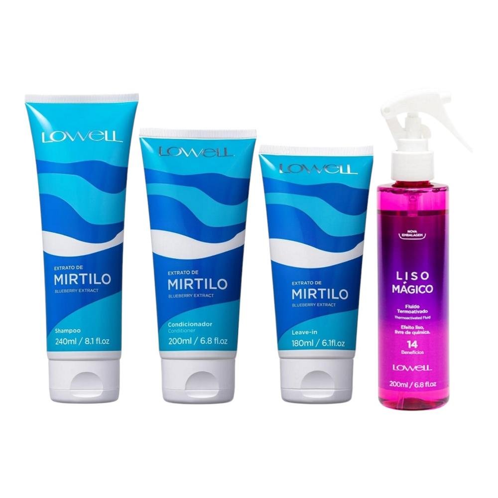 Kit Lowell Extrato de Mirtilo Shampoo + Condicionador + Leave-In + Liso Mágico Termoativado