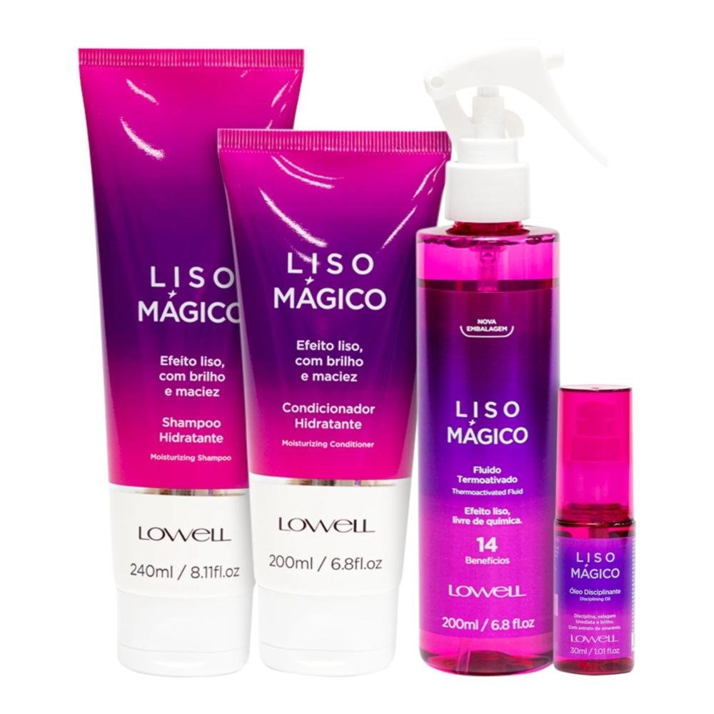 Kit Lowell Liso Mágico - Shampoo 240ml + Condicionador 200ml + Fluído TermoAtivado 200ml + Óleo 30ml