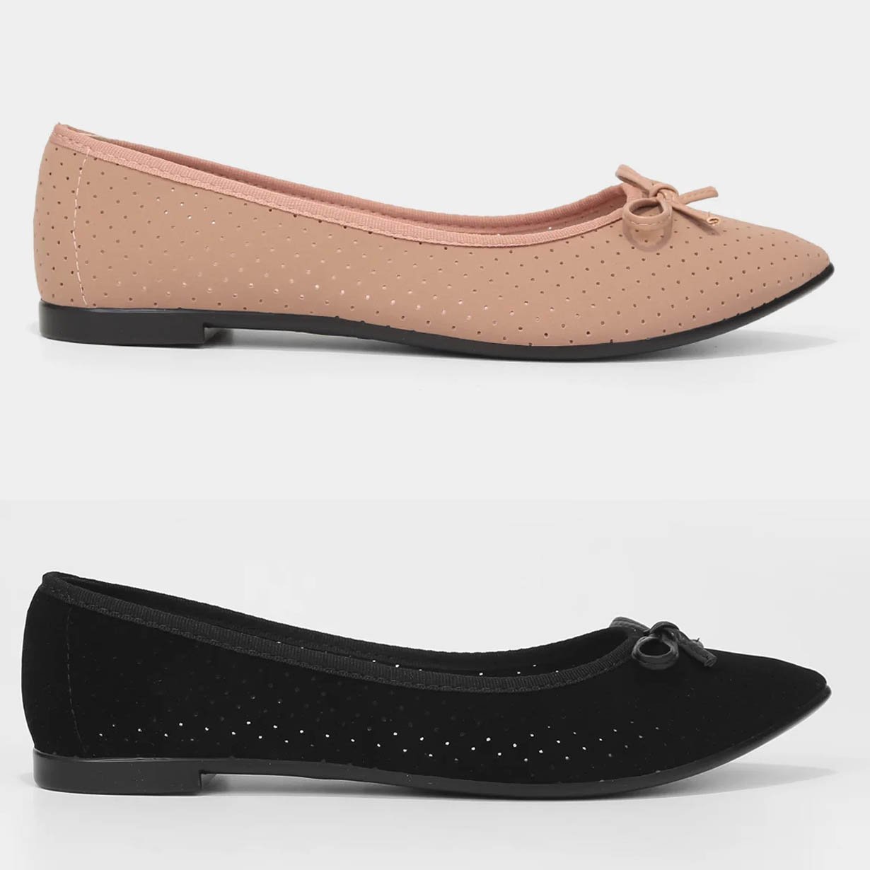 Kit Moleca 2 Sapatilhas Microperfuros Camurça Nude e Preto Multicores