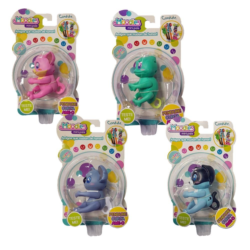 Os pequenos Moodies são animais super fofos e expressivos! Eles mostram seus sentimentos através das cores! Cada uma representa uma emoção, eles podem ficar alegres, tristes, cansados ou com sono. E ele ainda são ótimos companheiros para qualquer situação. Com os Moodies a brincadeira vai ficar muito mais divertida! Há mais 3 modelos para conhecer e se encantar: Cami, Pupi e Kiti.