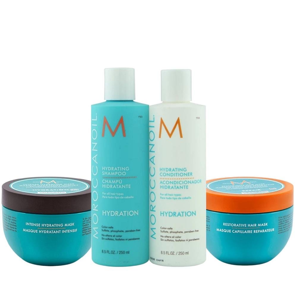 Kit Moroccanoil Hydration - Shampoo 250ml + Condicionador 250ml + Máscara Intense Hydrating 250g + Máscara Repair 250g