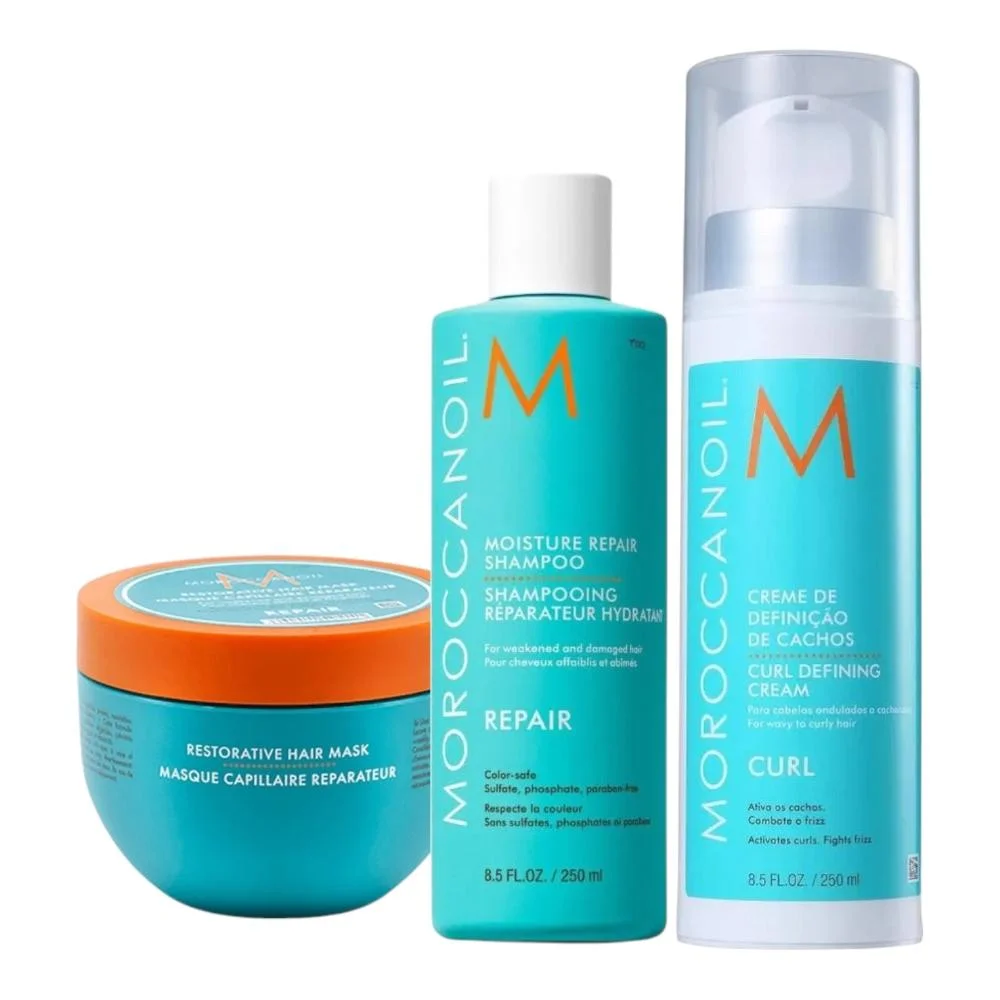 Kit Moroccanoil Moisture Repair Shampoo 250ml + Máscara 250g + Definidor de Cachos 250ml