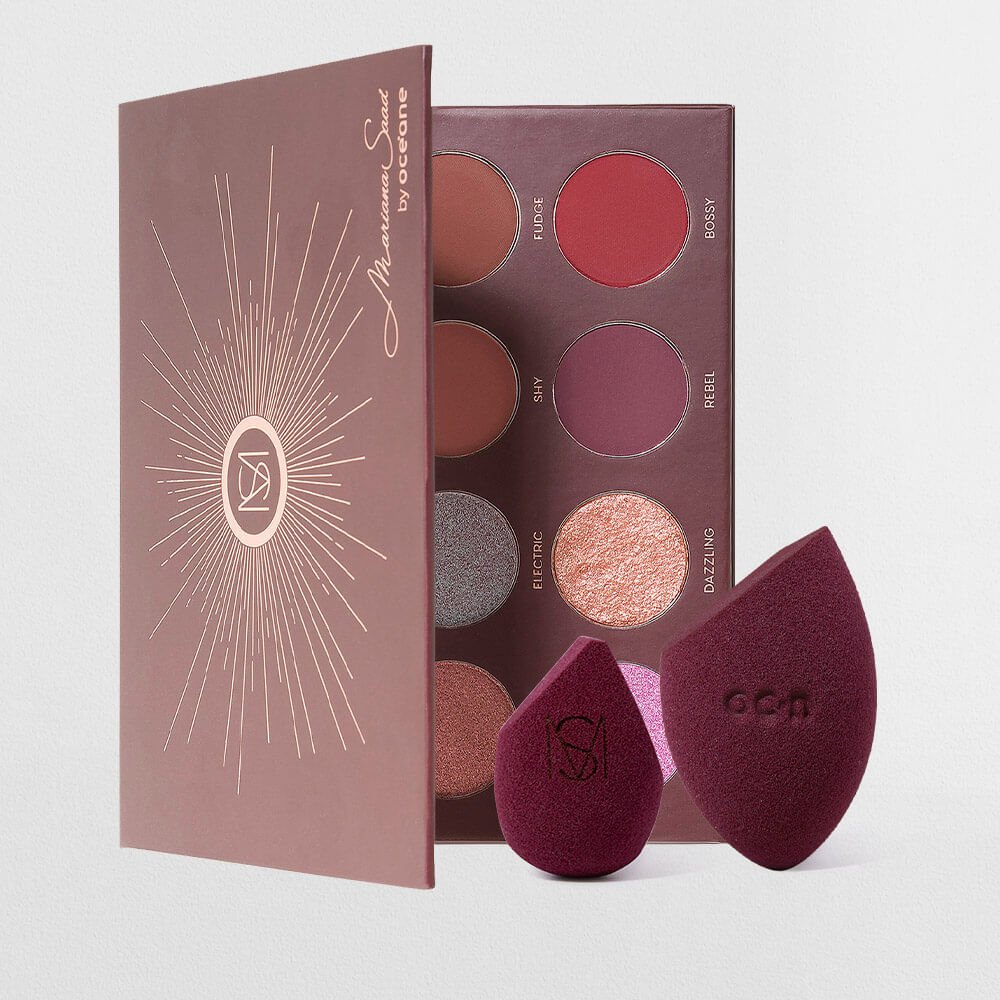 Kit Paleta de Sombras 12 Shades + Esponja de Maquiagem Flat Blend + Sister Blend Mariana Saad By Océane (3 Produtos)