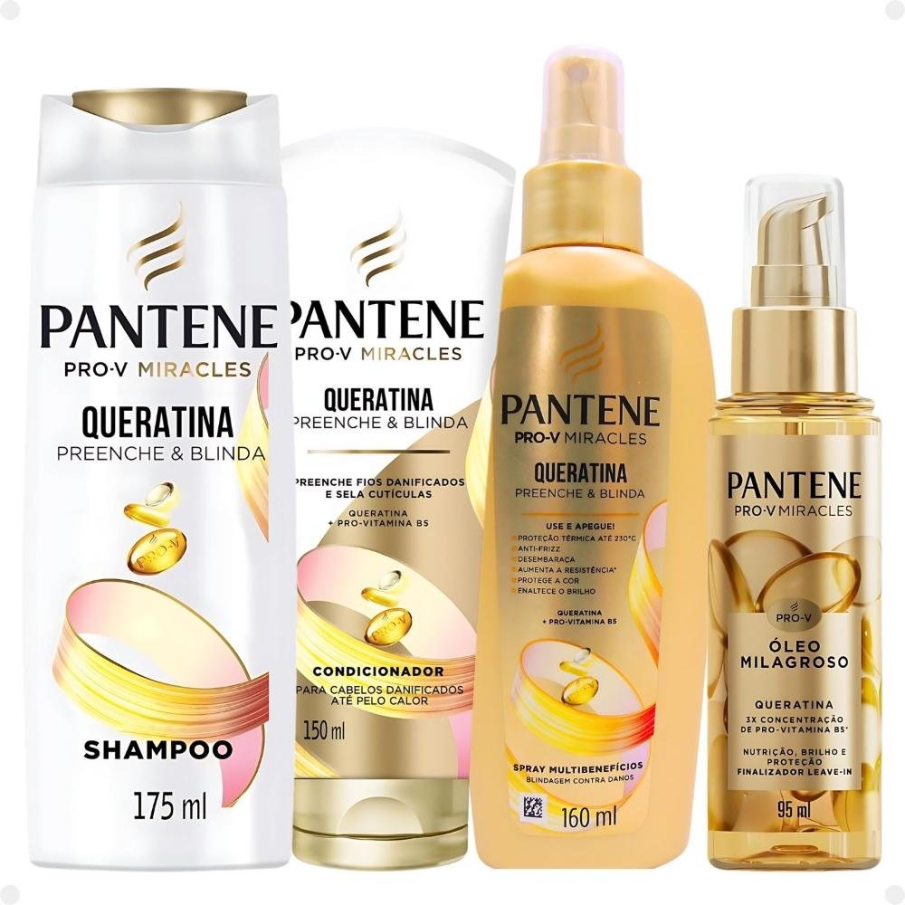 O Kit Pantene Pro-V Miracles Queratina é um conjunto de cuidados capilares que inclui um shampoo, um condicionador e um spray multifuncional. Cada produto é formulado com Queratina e Pro-Vitamina B5 para fortalecer, reparar e proteger os cabelos danificados.