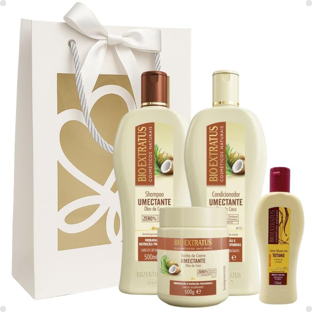 Kit Presente Bio Extratus Umectante Coco: Shampoo, Condicionador 500ml e Máscara 500g + Mimo Creme Tutano Silicone 150ml
