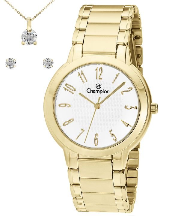 Kit Relógio Analógico Aço Feminino Champion Dourado