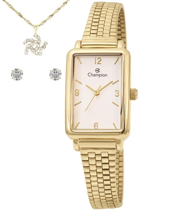 Kit Relógio Analógico Champion em Aço CF24199W Dourado
