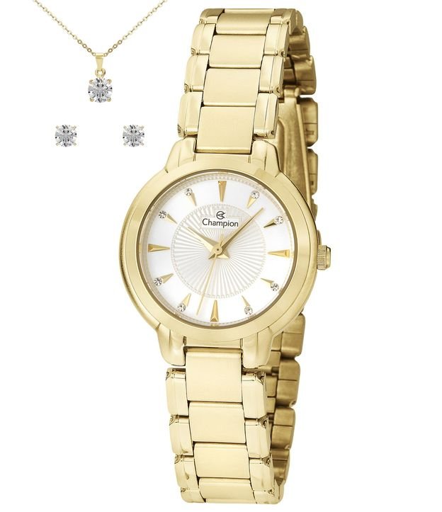 Kit Relógio Analógico Champion em Aço CH24937W Dourado