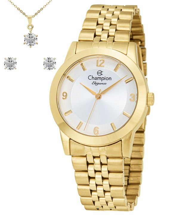 Kit Relógio Analógico Champion em Aço CN25314W Dourado