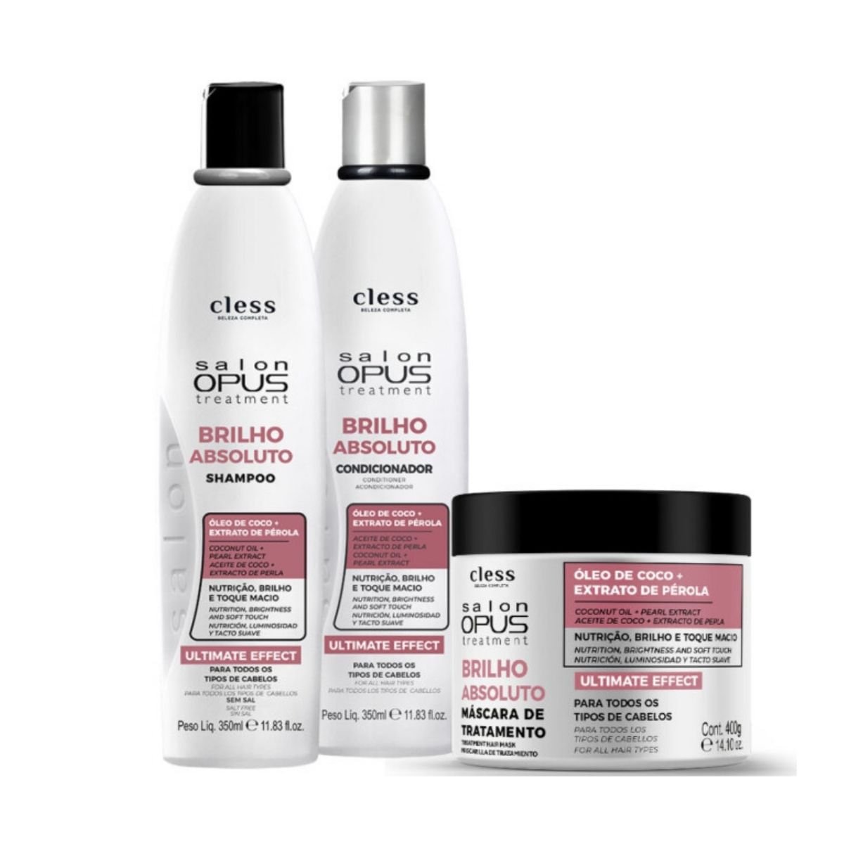 Kit Salon Opus Brilho Absoluto 3pc (Sh 350ml + Cond 350ml + Masc 400g) ÚNICO
