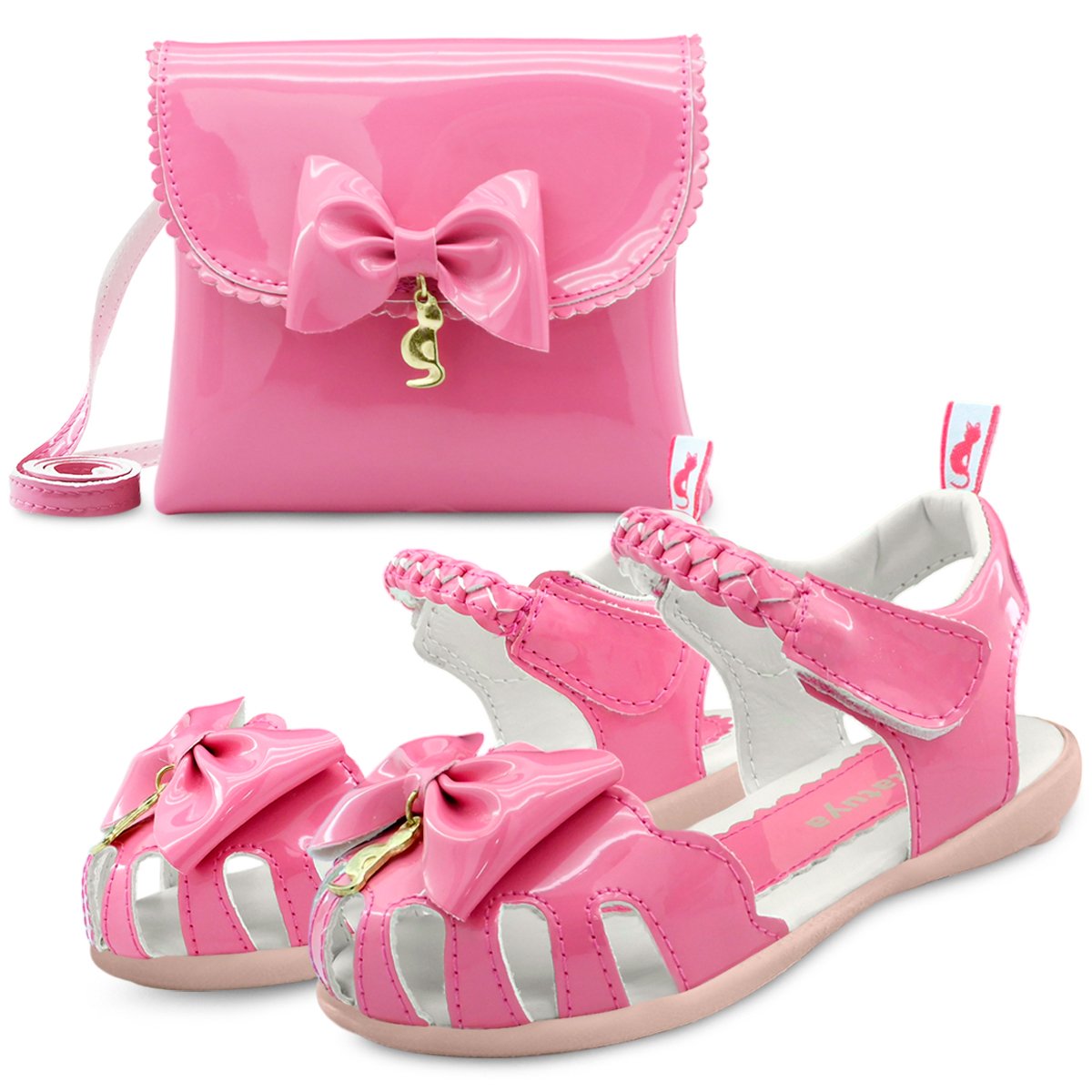 Kit Sandália Feminina Infantil Menina Com Bolsinha Laço Pink Gatatuya