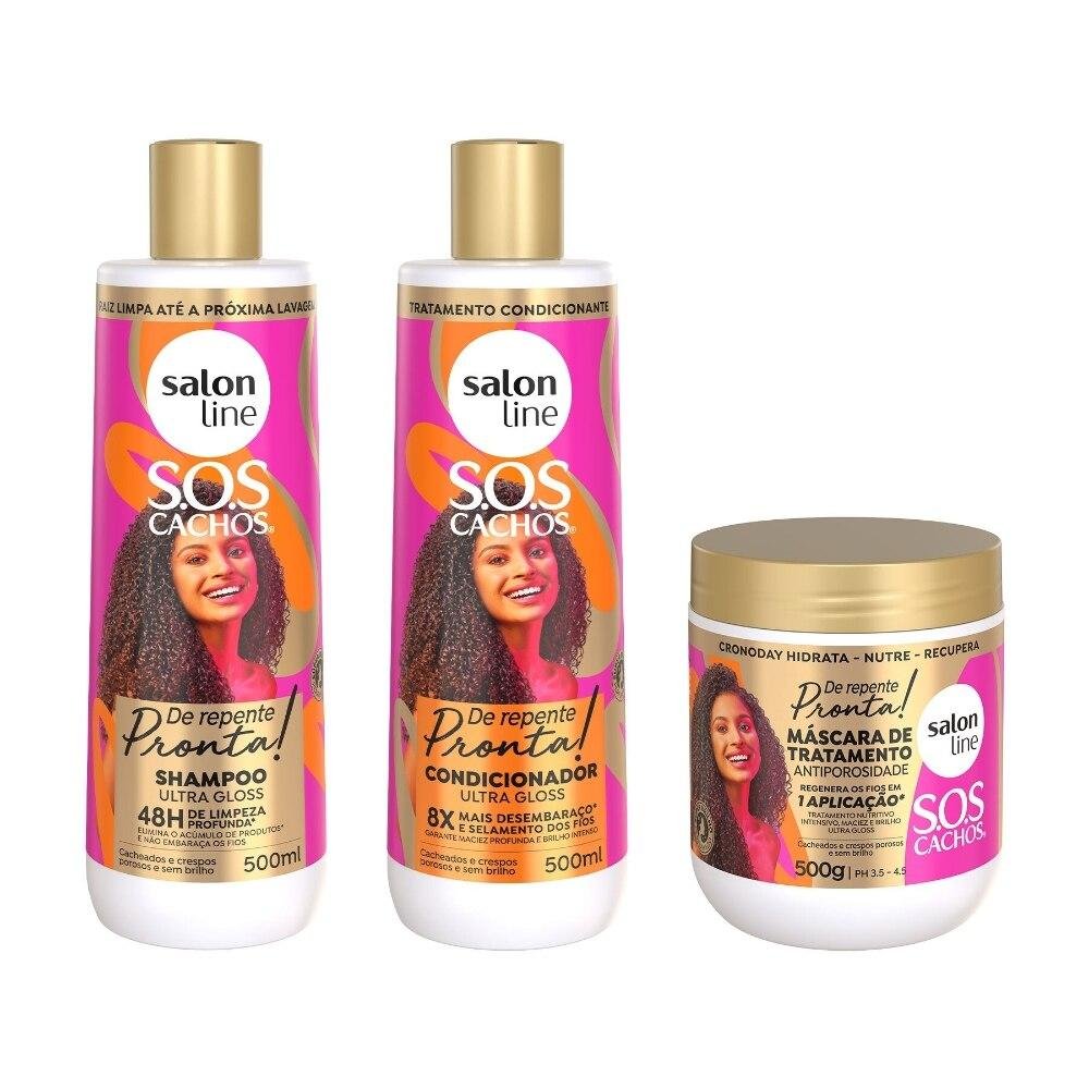 Kit Shampoo + Condicionador + Máscara Antiporosidade SOS Cachos De Repente Pronta!