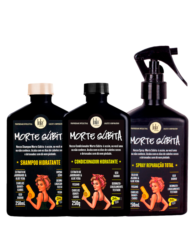 Kit Shampoo Hidratante Morte Súbita Lola Cosmetics 250ml + Condicionador Hidratante Morte Súbita Lola Cosmetics 250g + Leave In Reparação Total Morte Súbita Lola Cosmetics 250ml KIT