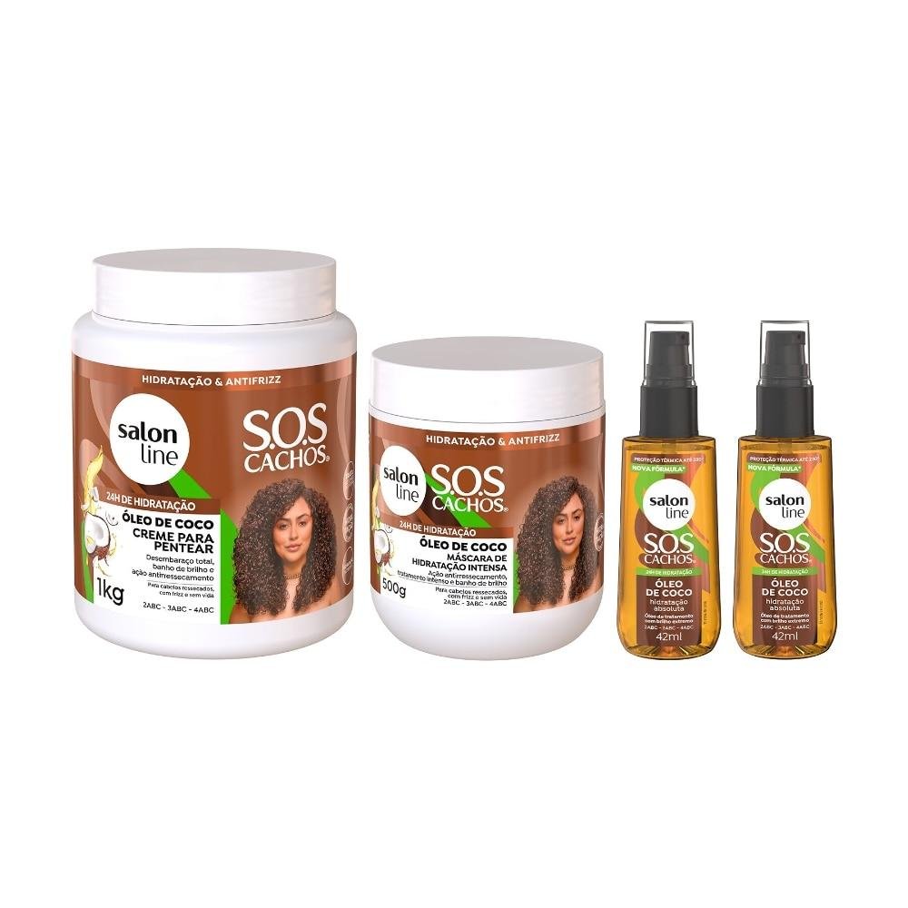 Kit SOS Cachos Coco com 2 Óleos, Creme para Pentear e Máscara de Hidratação