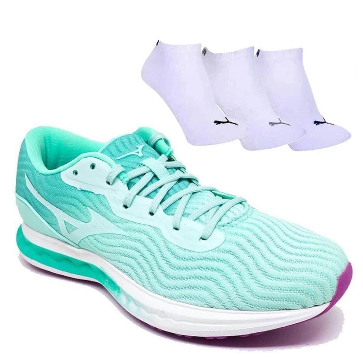 Kit Tênis Mizuno Glow Feminino + 3 Pares de Meia