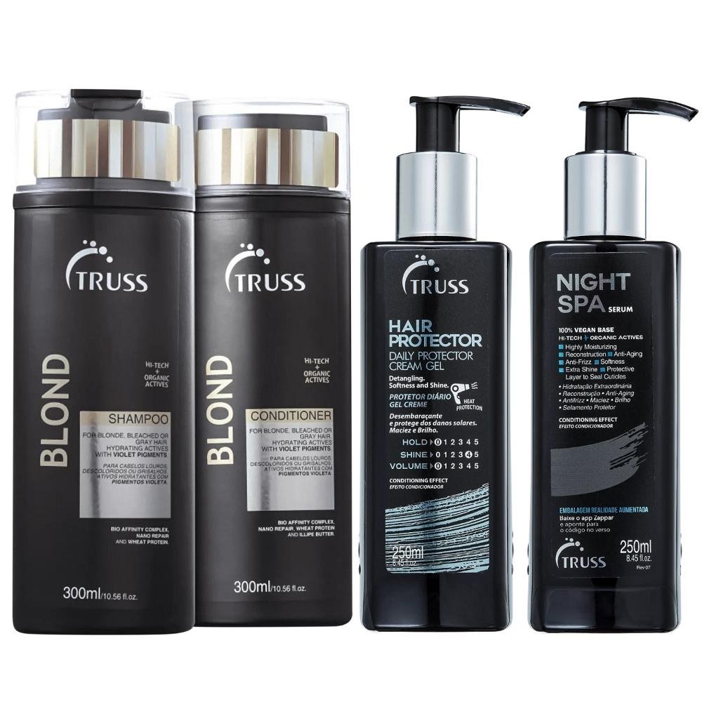 Kit Truss Blond Shampoo 300ml + Condicionador 300ml + Hair Protector 250ml + Night Spa 250ml