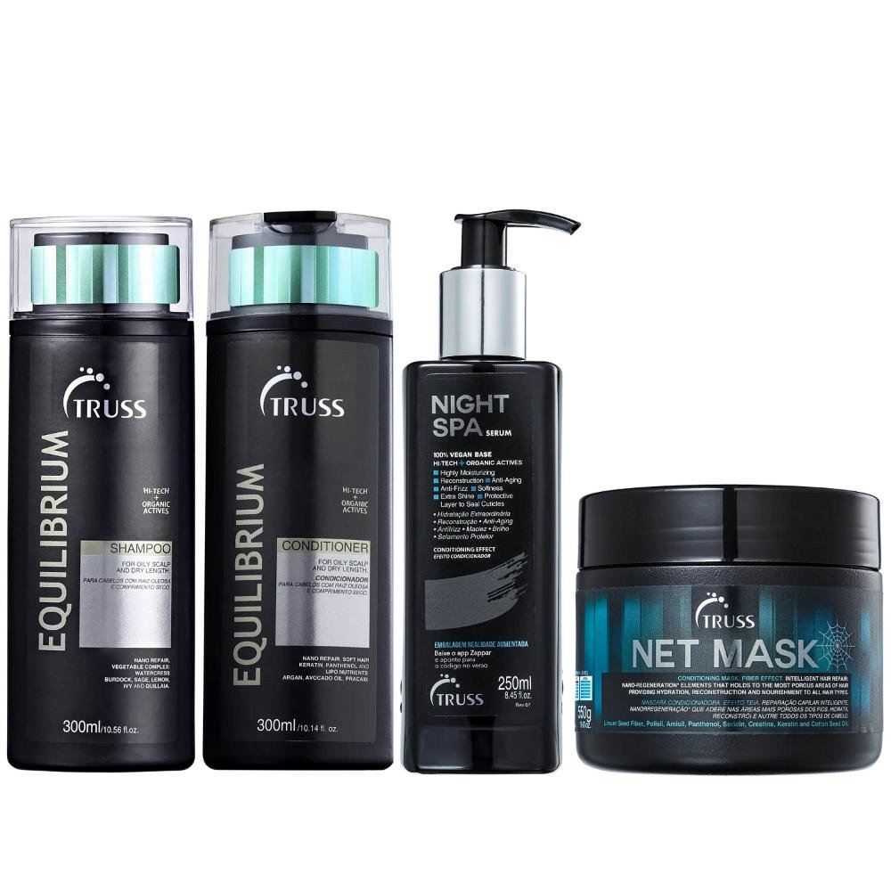 Kit Truss Equilibrium Shampoo 300ml + Condicionador 300ml + Night Spa 250ml + Net Mask 550g