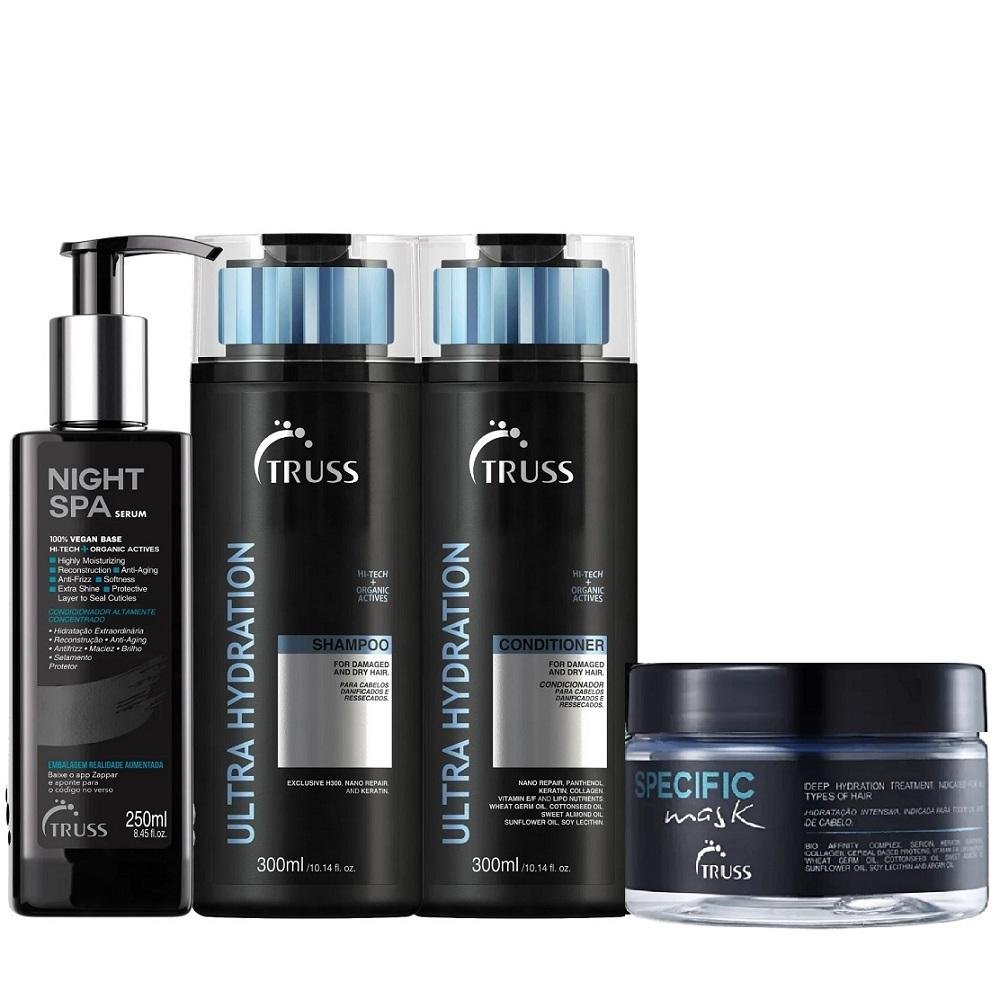 Kit Truss Ultra Hydration Shampoo 300ml + Condicionador 300ml + Máscara Specific 180g + Night Spa 250ml
