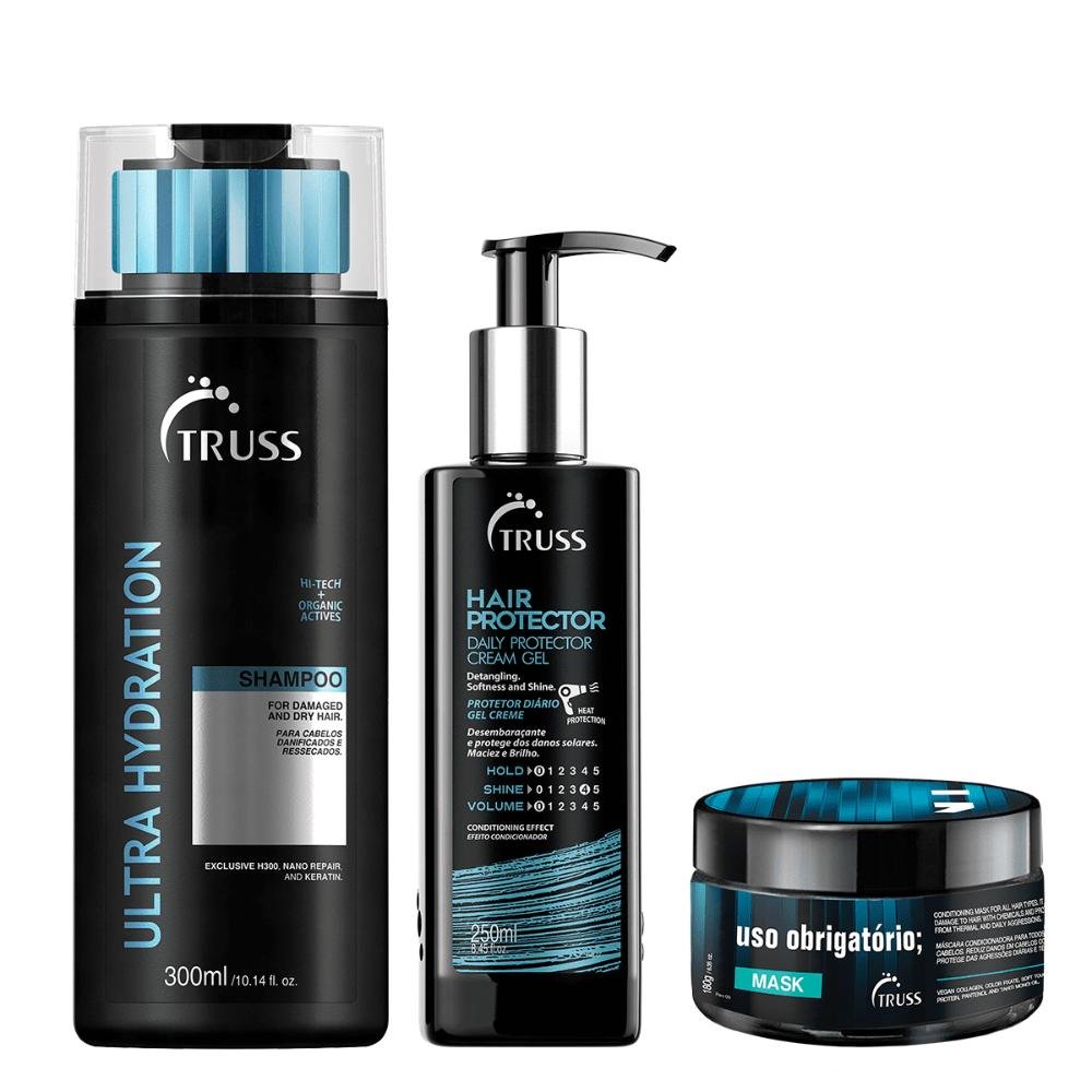 Kit Ultra Hydration Shampoo + Leave-in Hair Protector e Máscara Uso Obrigatório - Truss ÚNICO