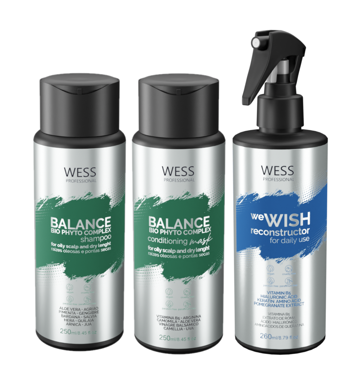 Kit Wess Balance Shampoo Condicionador E we WISH Reconstrutor Diário