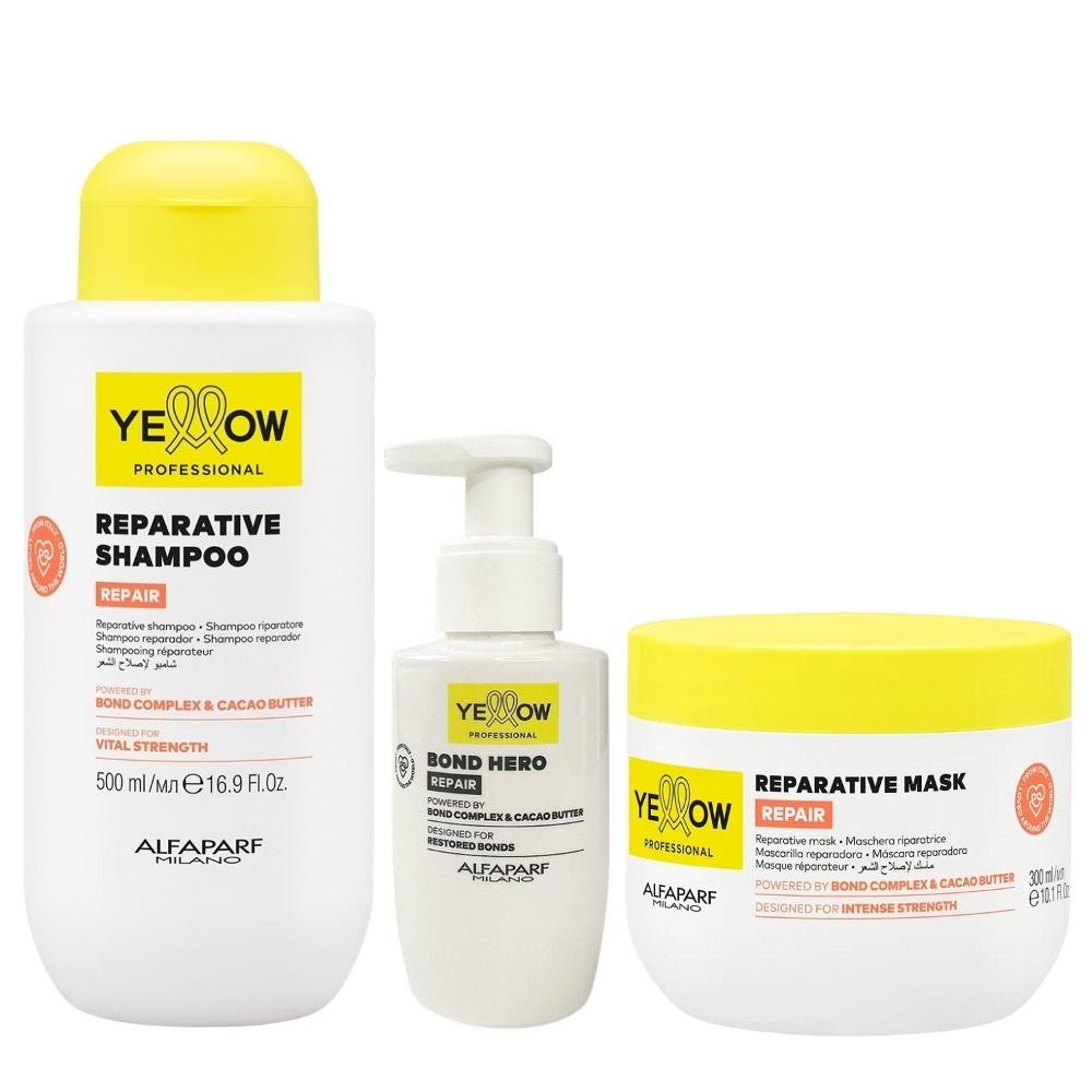 Kit Yellow Repair Tratamento Reparador - Shampoo 500ml + Máscara 300ml + Bond Hero 100ml