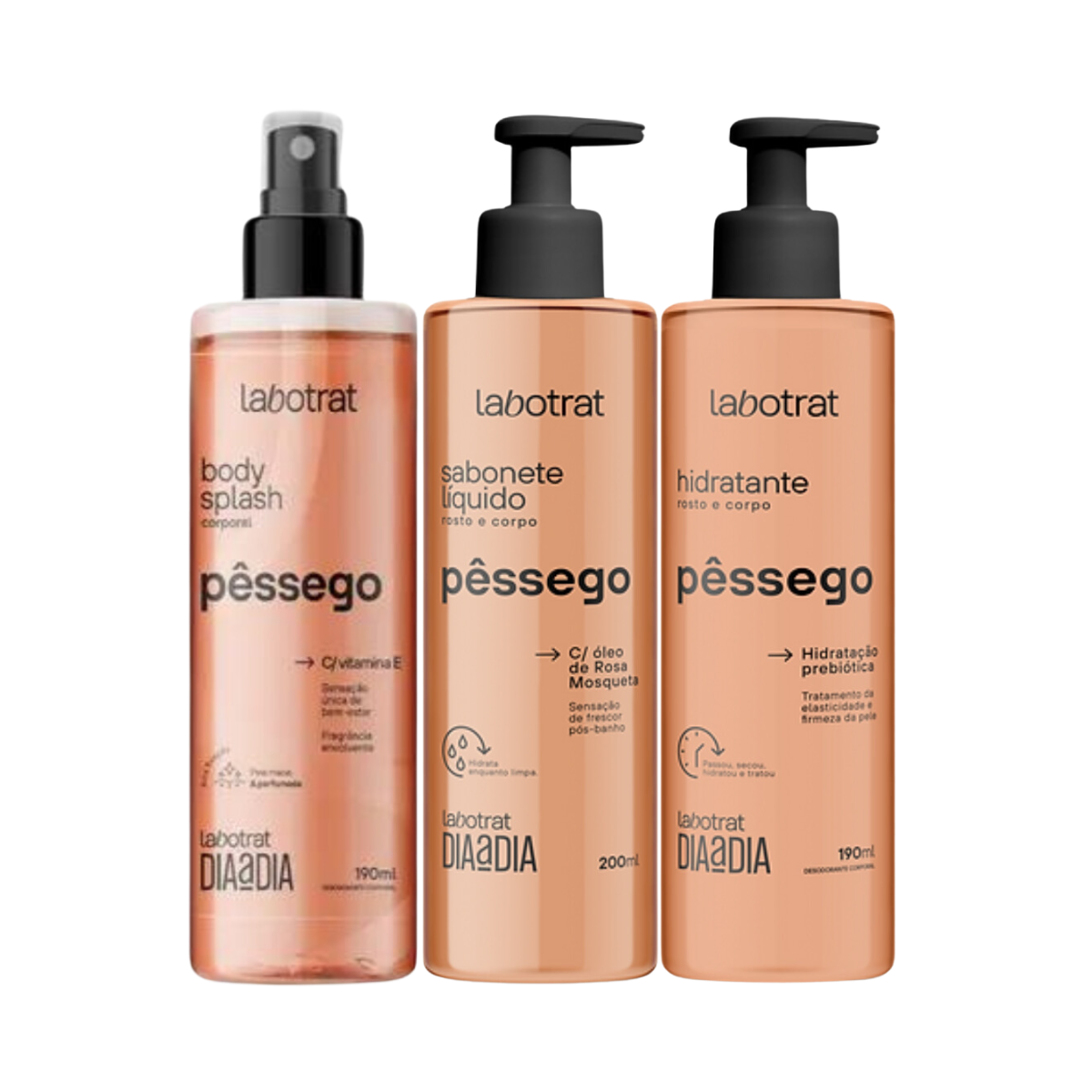 Labotrat Dia a Dia Pêssego Body Splash + Hidratante + Sabonete