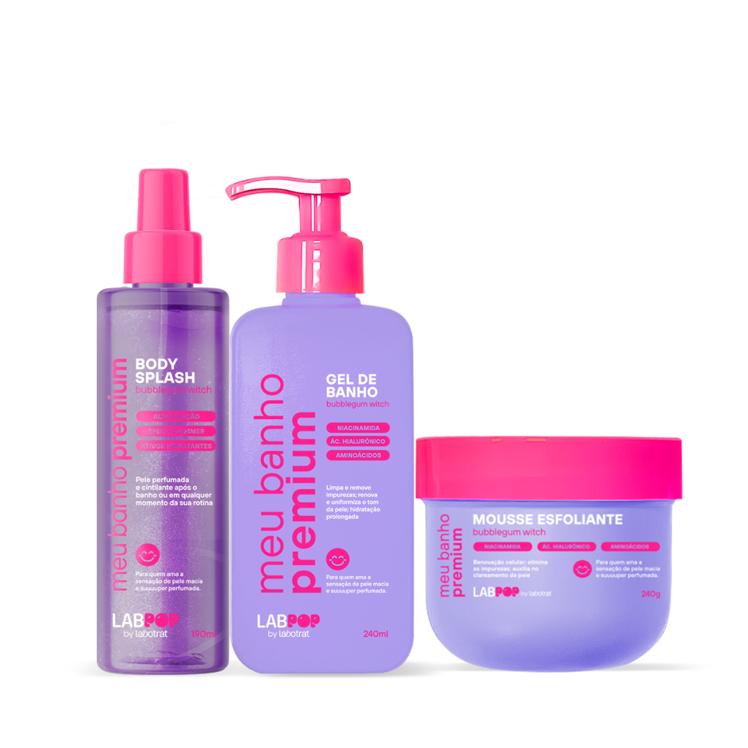 Transforme seu banho em uma experiência mágica com o Labotrat LabPOP Bubblegum Witch! ⿨ Este kit completo, com esfoliante, gel de banho e body splash, te envolve em uma deliciosa fragrância de chiclete, deixando sua pele macia, perfumada e radiante. Com o Labotrat LabPOP, cada banho é um momento de puro prazer e autocuidado.