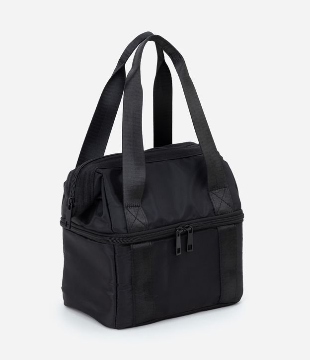 Lancheira feminina confeccionada em poliéster. Possui fechamento por zíper duplo, alça de mão reforçada, forro fácil de limpar, ideal para conservar alimentos. Estrutura firme, com bolsos laterais e base estável para transporte diário.