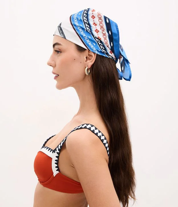Lenço Acetinado com Estampa Sardinha Azul