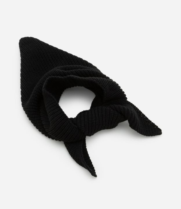 Lenço de tricô masculino, com formato triangular que facilita amarração. Possui textura uniforme e etiqueta aplicada na borda. Estrutura maleável, ideal para uso no pescoço ou como acessório versátil.