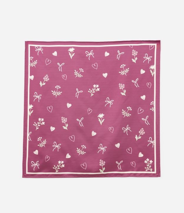 Lenço Infantil em Cetim com Estampa Flor e Corações - Tam Único