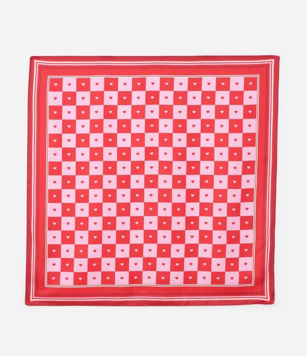 Lenço Quadrado Acetinado Estampa Corações Curve e Plus Size Vermelho