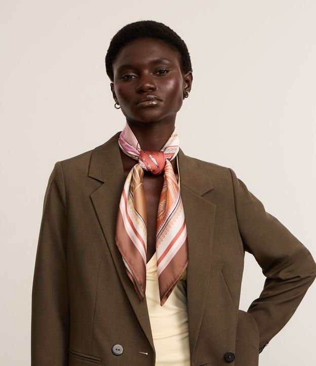 Lenço Quadrado em Cetim com Estampa Solaris Multicores