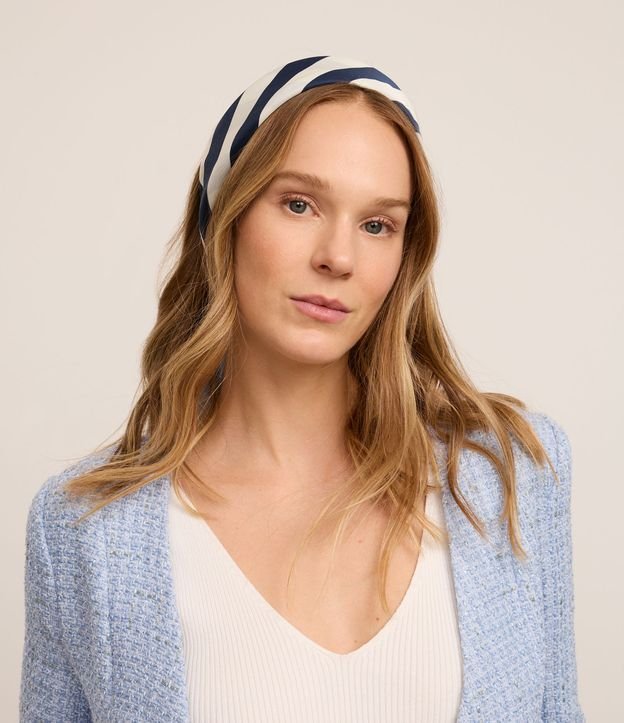 Lenço Quadrado em Tecido Acetinado com Estampa Listras