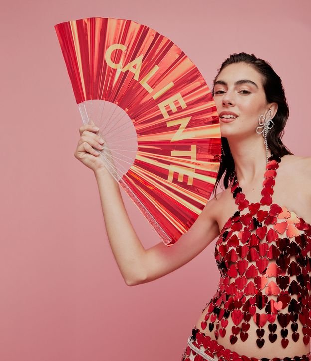 Leque em Plástico Metalizado com Lettering Caliente Vermelho