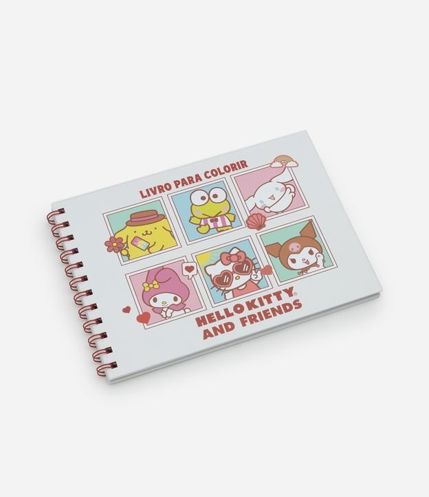 Livro para colorir, com temática da Hello Kitty e amigos. Possui capa dura e espiral.