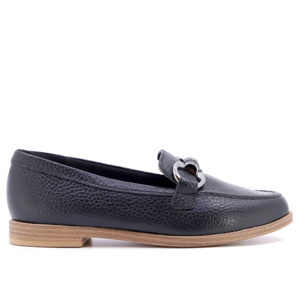Loafer Preto Salto Bloco Couro Básico