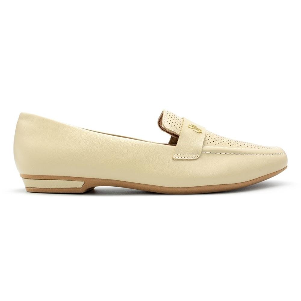 Loafer Usaflex Feminino Couro Salto Bloco Couro Casual UC0501 Bege