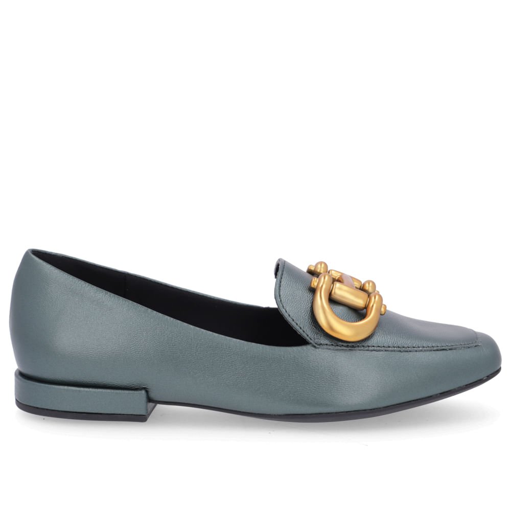 Loafer Verde Couro Básico Enfeite Escovado Verde